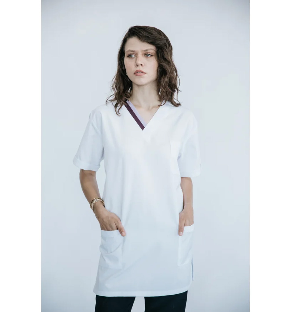 Hemşire Forması – Kadın, Beyaz Tunik, V-Yaka, Cepli (Tam Boy) (HUF-011) sağlık ortamları için geliştirilmiş profesyonel bir üründür. Nefes alabilir ve dayanıklı kumaş yapısı uzun vardiyalarda konfor sunar.
